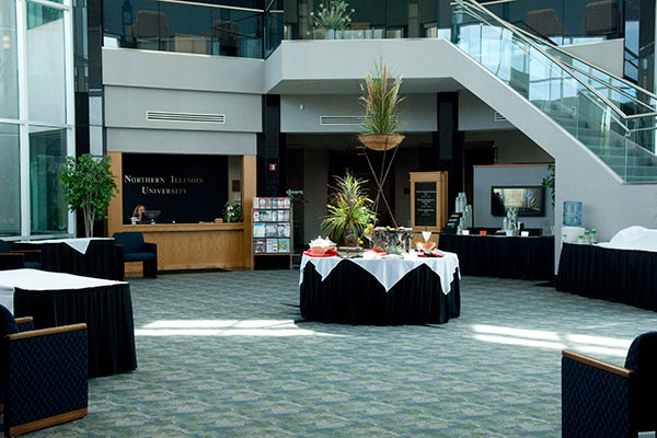 Whether you’re hosting a meeting, celebrating a wedding or marking a special occasion, NIU Rockford has what you need. Our unique venue is easily accessible from Illinois, Wisconsin, Iowa or Indiana. It features a beautiful atrium with floor-to-ceiling windows, festive outdoor spaces, and a variety of meeting and dining spaces. Full-service catering and nearby hotel accommodations complete the picture. See arrangements and room locations below, and please contact us to learn how we can make your event special!